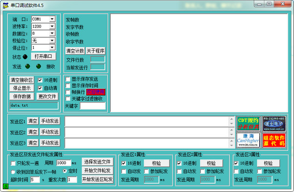 一款简单易用的串口调试软件, 可以修改crc检验,内置3个发送区域,可手动发送或者自动发送,支持设置3个发送区的属性,如发送数据进制、可参加轮发与自动发送。支持设置显示保存发送与保存时间,关键字过滤接收等。【软件特色】
