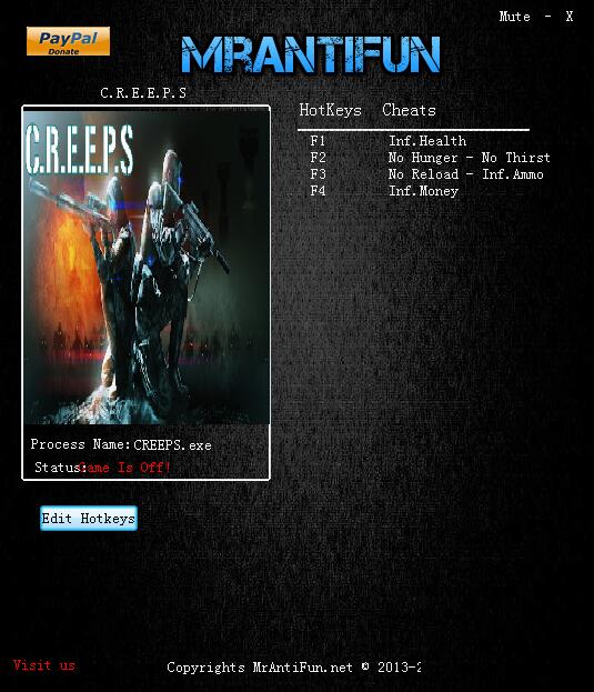 战栗前行C.R.E.E.P.S六项修改器,拥有无限生命、无限子弹、无限金钱等6项功能,有需要的玩家自行下载【软件特点】