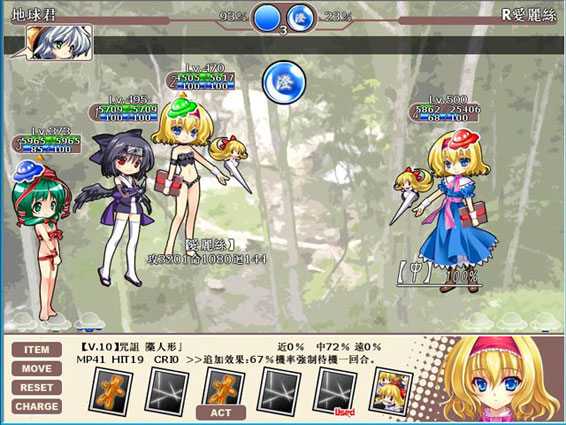 作为东方project的同人作品,几乎包含了全部东方人物,有几十个人物可以供玩家操作。可养成的人物角色,每个角色都可以进行进化,进化之后人物外形会有改变。