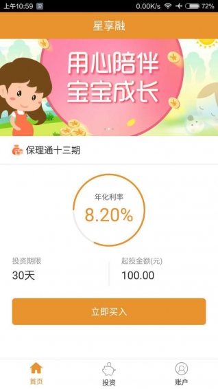 星享融是五星控股集团旗下专门满足妈妈们理财需求的综合服务公司,公司秉承“有保障、诚信、高效、共赢”的理念,依托五星控股集团品牌保障及技术支持,融合金融行业优势资源,采取专业、严密的风险控制手段,筛选安全、优质且适合妈妈理财需求的金融产品,一站式满足妈妈们的财富管理需求,实现资产稳健增长。【软件特色】