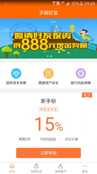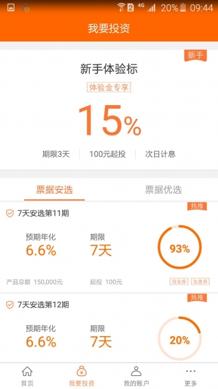 1、注册就送10000元理财金2、新手专享15%年化收益,100元起投,全程0手续费