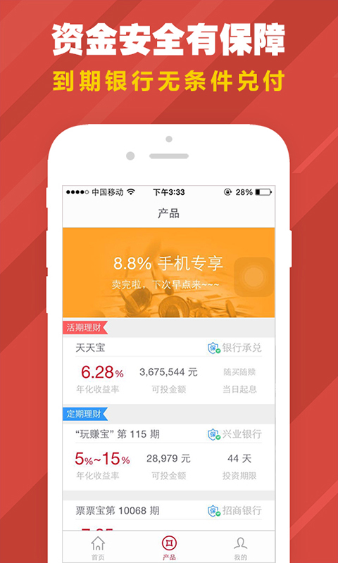 2.高安全 资金由第三方托管,银行无条件保障产品本息安全。