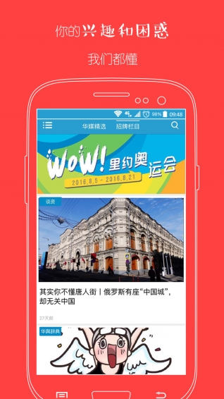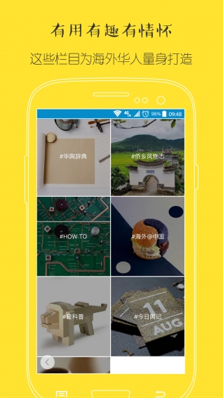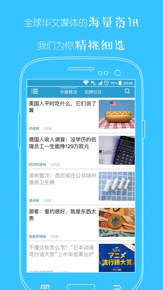 华舆是一款为海外华人华侨打造的资讯服务社交类APP,致力于让目标用户更快地了解当地社会,更好地享受海外生活。如果你是留学生、新移民、侨二代,或是对海外中国有一颗珍贵的好奇心——不要放过我们,华舆就是你的菜!◆了解全球华文资讯,这一个APP就够了