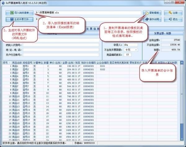 Ez开票清单导入助手根据开票销货清单的Excel表格,生成xml开票文件并导入到开票软件开出发票,软件支持含税价和不含税价两种模式,有需要的赶快下载吧!【软件特点】