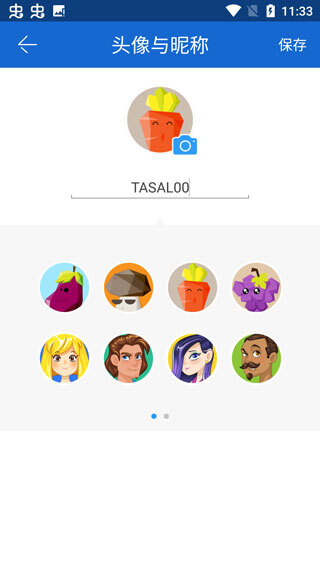 2、您能够在上方填写个人昵称,从下方挑选图标作为自己的大头贴,接着点击右上角的保存按钮。