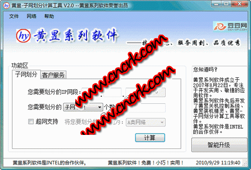 黄昱子网划分计算工具 V2.0 简体中文绿色免费版 - 软件用于网络系统管理专业人员在进行IPV4子网划分的时候使用。