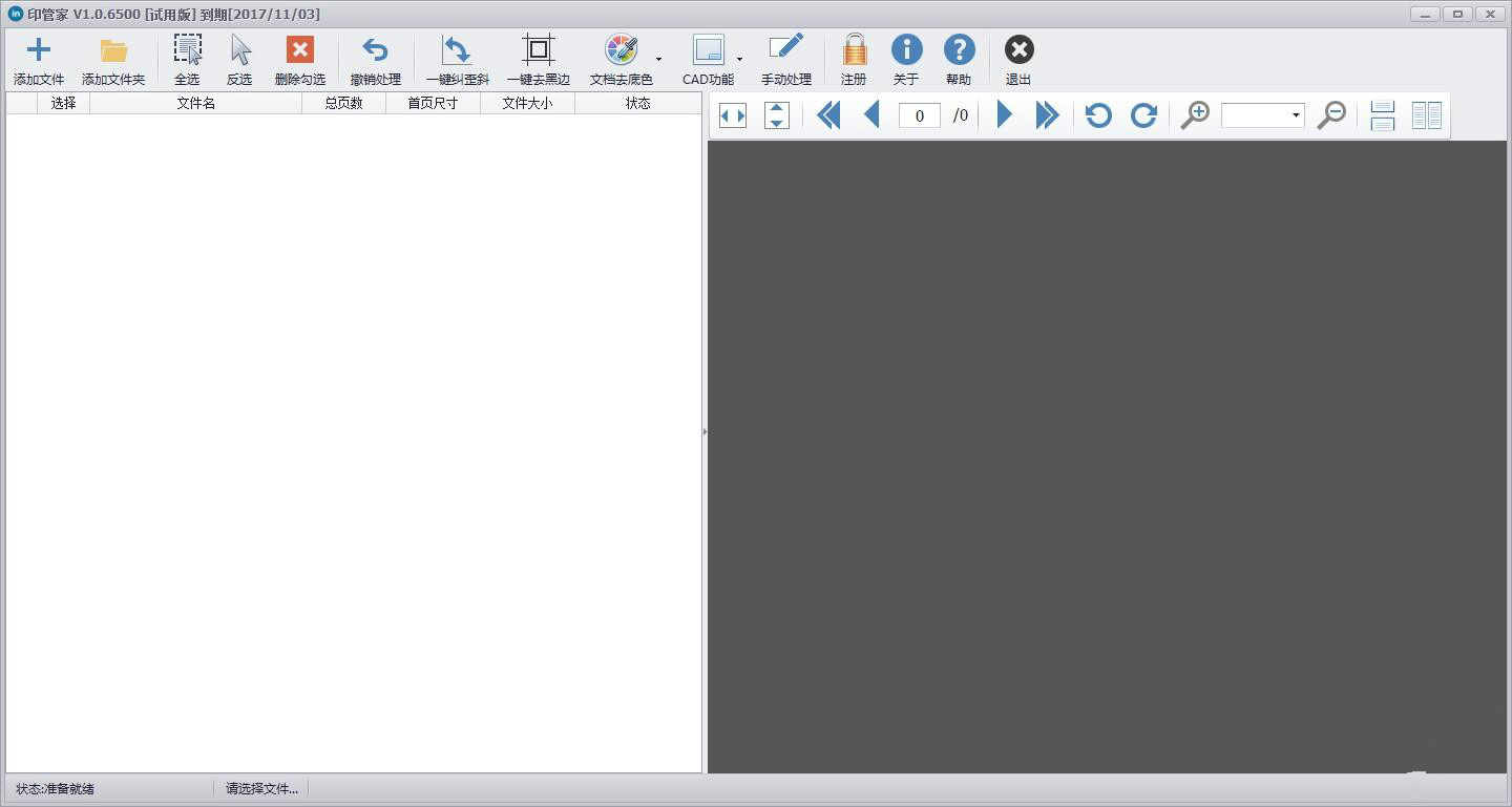 印管家-印前处理小助手是一款专门针对快印店扫描图纸印前处理的团结,软件主要对CAD大图纸扫描,A3/A4文件扫描,进行了一键批量纠偏、纠倾斜、纠歪斜,一键去文件底色,一键蓝黑互转等几个功能做了大量针对性的开发。【功能介绍】