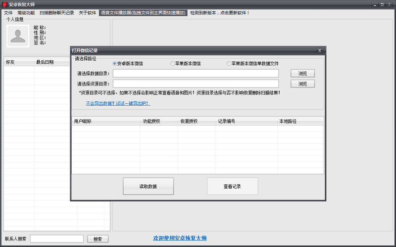 6、支持恢复已Root安卓设备的微信,QQ,陌陌等聊天记录数据的导出和已删除恢复(含文字)