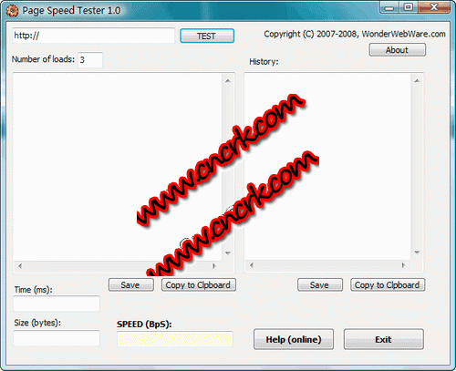 一个无须安装,不写注册表的免费小程序。专门用来检查网页的载入速度,特别适应用于网站开发者进行页面加载速度测试。使用非常简单,输入目标网址,设定载入次数即可,如果是多次测试,它会自动给出一个平均数值供你参考