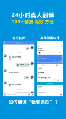 阿拉私译是款提供24小时在线翻译服务的中英翻译应用。具备文字,语音,拍照和直接电话真人互动翻译功能。把阿拉私译装进您的口袋,让我们一起见证别样的精彩!【更新日志】