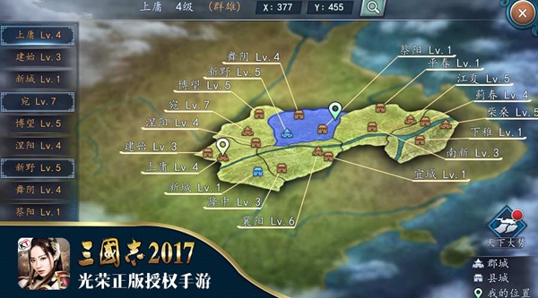 在《三国志2017》中,所有玩家朋友都将从“黄巾起义”开始,在游戏中崭露头角,辗转获得封地。而城池则将作为玩家的“大本营”,通过化身“主公”的玩家指挥城池建设、打造军队、世界征伐等,逐步壮大,最终一统汉室江山。主城里二十多个建筑各自独立,数十种玩法解锁升级乐趣无敌。合理安排建筑建设以及内政的实施,是城池系统的主要玩法策略;同时城池发展的程度,将直接决定玩家的部队生产、作战能力。游戏中,每位玩家进入游戏后都可选择“魏蜀吴三国”中的一国进行依附,征伐并最终一统天下。同时,为了增加玩家的目标感,过程中还可以体验“加官进爵”。值得一提的是,当玩家的最高官职成为国王时,便能指挥其他玩家发起国战。