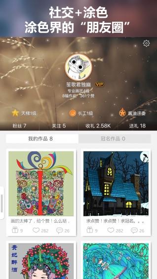 分享、关注、点赞、评论、私信、送礼...涂色交友两不误