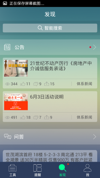 【业务系统】可查找系统房源,跟踪跟进房源,选定实勘房源经行上传图片、写跟进【营销房源】绑定酷虎账号,可将酷虎房源分享朋友圈,也可手动创建房源