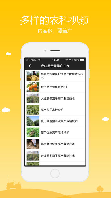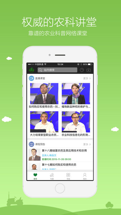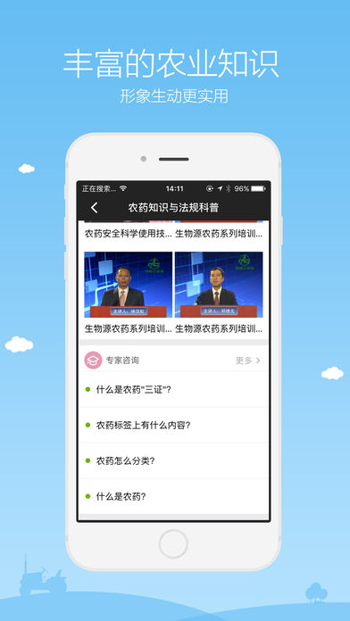 1、内容推荐,最新的农业新闻资讯、重要通知、专家讲座。2、农业专题,根据不同专题展现特定领域的农业知识和视频,包括:植物新品种保护、农药知识与法规科普、农业政策与防灾减灾技术、高产创建技术、低毒农药使用技术、测土配方施肥、病虫鼠害疫情监测与防治、农垦教育培训。