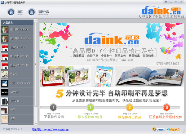 大印客个性印品专家是一款免费绿色的DIY个性制作软件。该软件可支持自由置入相片、编辑文字、设计图像,是个性化相册、个性台历、个性挂历等影像产品的最佳设计工具。