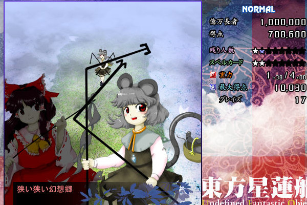 自机角色除了有历代的主角博丽灵梦及雾雨魔理沙外,还追加了在风神录及地灵殿两作中分别以第五关头目及Extra中头目身份登场的东风谷早苗。本游戏的副标题Undefined Fantastic Object是参考不明飞行物的英文简称而来的,一般解为“未知的幻想物体”或“未知的美妙物体”,而ZUN的官方网站则有“幻想的弹幕物体”(幻想的な弾幕物体)的解释。【基本操作】