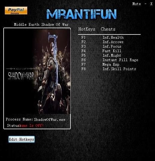 中土世界战争之影八项修改器是专为《中土世界战争之影》游戏玩家们所提供的游戏修改工具。该工具可提供无限健康、无限箭矢、无限注意力、快速击杀、无限力量、瞬间充满愤怒等八项修改功能,有爱自取。
