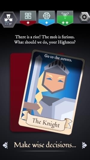 做出艰难的决定,通过向左或向右滑动的高幻想中世纪王国的统治者。管理利益和由人类多样化的社会需求,精灵和矮人。