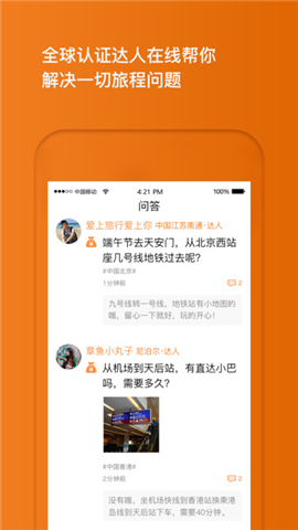在线为游客提供旅游咨询、答疑、推荐、代订等服务,解决游客对目的地不熟悉,没有时间研究攻略、语言障碍等各类困难,帮游客轻松搞定旅途。