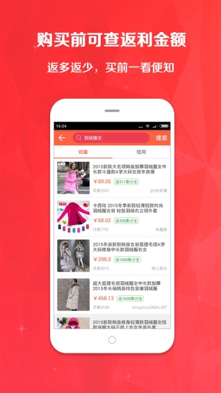 购物返利省钱神器,支持淘宝返利,天猫返利,聚划算返利及超火的九块九包邮返利,商城返利,返利高达50%,全网返利最高!支持签到奖励!提现申请24小时到账,注册使用完全免费! 最省钱:精选全网人气宝贝,返利高达50%,该省的一分钱也不能少! 最简单:常去的商城一触即达,搜宝贝更便捷,查返利更简单! 最好用:支持400多家商城购物返利,宝贝降价会提醒,随时随地拿返利!【更新日志】