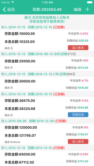1、记账:记账时可以选择记账类型、收支时间、收支描述以及收支金额。2、支持同步账单数据到iCloud,防止更换设备或者删除应用时数据丢失。