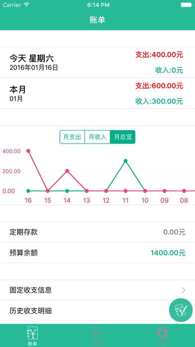 5、设置预算:可以在应用中设置您每月的预算,应用帮您计算出预算余额。
