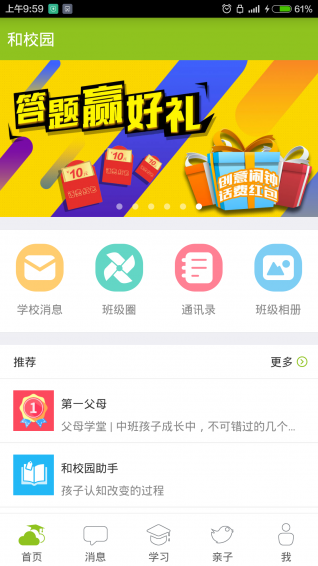 内蒙古和校园家长版是一款便捷的家校沟通工具。内蒙古和校园家长版利用中国移动的通讯技术,实现了用手机进行互动式教学活动,为老师提供日常教学管理的功能,为家长提供学生的教育、学习、学校生活等各方面的信息,为学生提供学习、成长的综合应用,搭建起学校、家长、教师之间畅通的沟通桥梁。【软件特色】