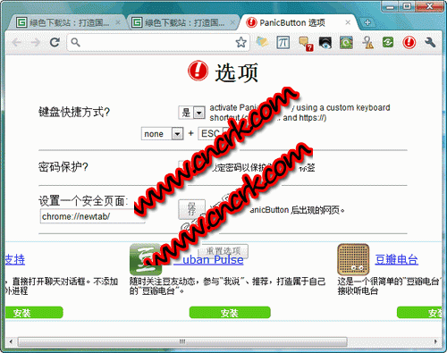 谷歌浏览器老板键插件 V0.11.1 简体中文官方安装版 PanicButton 可使您更方便地一键隐藏所有标签。这些标签将被作为书签存储在单独的文件夹中。此后 PanicButton 按钮将变为绿色,并显示出当前已经隐藏了多少标签。