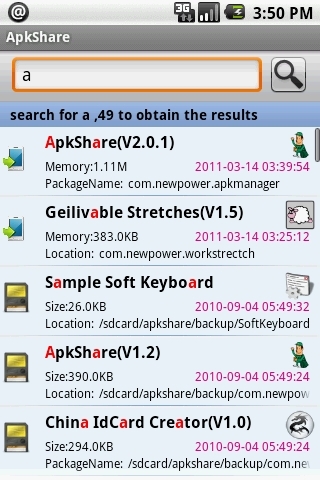 新增应用搜索功能,搜索已安装和Sdcard上的应用信息。