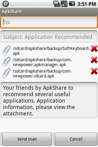 分享:通过邮件附件,你可以将应用发送给好友。通过GMAIL发送邮件,最大支持25M附件,建议你在网络环境好的情况下使用。