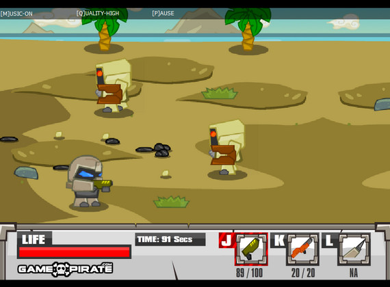 全金属狂潮中文版是一款以对抗机器人为主题的动作冒险小游戏,英文名为Heavy Pawnage。在这款全金属狂潮游戏中玩家需要注意各种不同的敌人并珍惜自己有限的弹药,同时要收集黄金从而购买升级。游戏里有多种形态各异,特性不同的机器人敌人,要想过关的话还是需要优秀的装备,游戏中的战斗紧张有趣,喜欢挑战的玩家不妨把这款全金属狂潮下载回去试试。【游戏玩法】