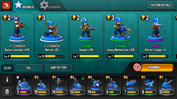 3、收集超过100多种不同的兵种进行升级吧!
