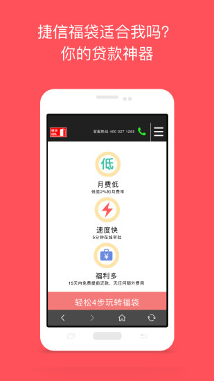 捷信现金贷款app是一款提供小额即时现金贷款的手机软件,该软件具有低利率、无隐藏费用、下款快等特点,用户只需在线填写资料,简单几步就能轻松贷到现金贷款,解决燃眉之急。