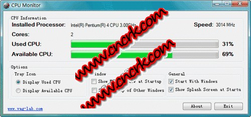 可以在系统托盘中监控中央处理器,也可以改变图标来显示CPU的使用情况,比如CPU安装模式,CPU速度、CPU的使用率。