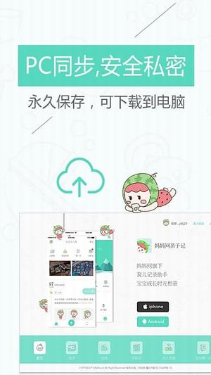 另外,很多妈妈怕宝宝的照片、视频会丢失,觉得只有把照片、视频存在电脑里才安心。“妈妈网亲子记”也兼顾到了这个问题,所有上传的照片、视频都会永久保存并同步到PC端,妈妈们可以通过PC端将这些素材轻松地下载到电脑中留存。