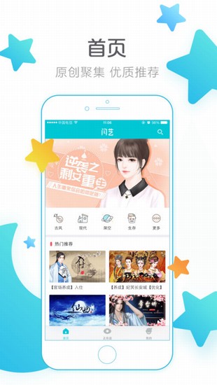 闪艺是原创互动文字平台,提供言情、玄幻、都市、悬疑、二次元等各种类型互动文字作品。1、丰富有趣题材、海量精美作品等你来体验~