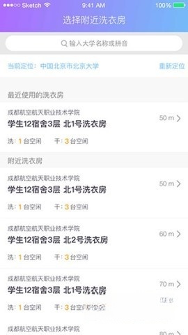 3、借助定位功能查找周边设备,并依据地图迅速选定洗衣房。