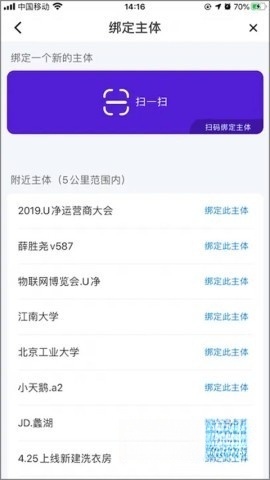 1首次使用时,需通过扫码或者借助地理位置定位服务来绑定服务主体。