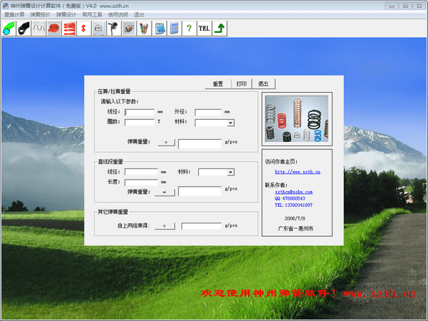 神州弹簧设计计算软件是一款免费实用的弹簧设计计算软件。该软件拥有重量计算、弹簧报价、弹簧设计、常用工具以及其他计算功能,使用简单,容易上手。