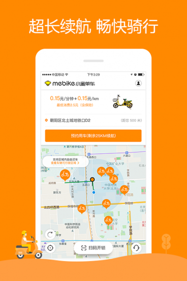小蜜单车致力于推行“分时租赁”的理念,为大众提供电动单车分时租赁服务。便捷的借还渠道,用户通过APP让用户迅速租车用车。一键启动,随租随还,按分钟计费,自助缴费。小蜜单车让出行更简单便捷。【软件特色】