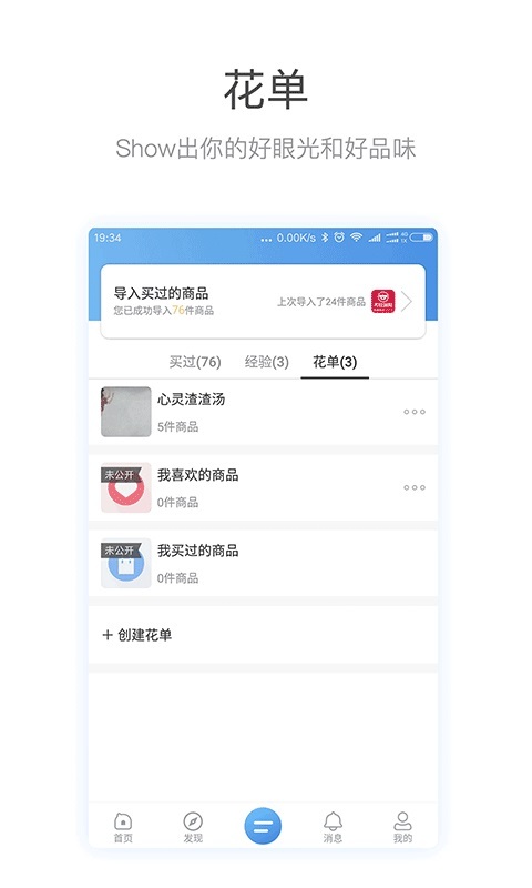 在花记,你可以轻松快捷的创建自己买过的或想买的购物花单,与好友一起分享交流,Show出你的好眼光和好品味。