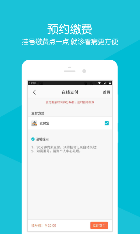 预约挂号:可根据科室、专家在客户端自由进行门诊预约预约缴费:挂号缴费点一点 就诊看病更方便