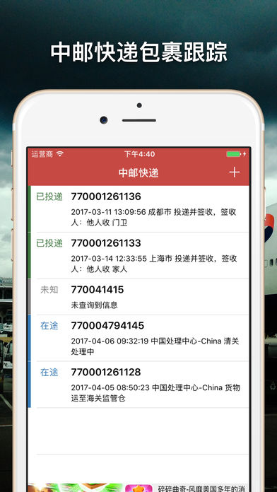 澳洲中邮快递运单跟踪:方便地跟踪您的中邮快递运单。内置条码扫描器:让快递跟踪号录入更快速、省时省力。