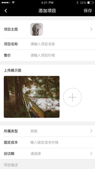 2、项目管理应用,添加项目时可给每个项目设置单位,项目定价更清晰