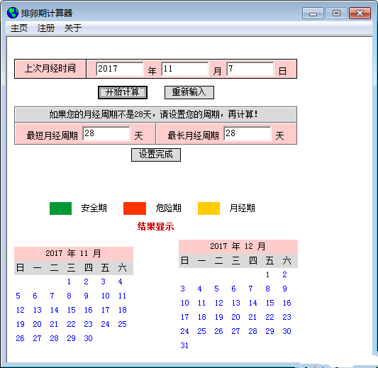 排卵期计算器是一款完全免费的软件,帮助您便捷计算排卵期与安全期,指导怀孕、避孕,是已婚夫妻不可缺少的每月必用软件。排卵期计算器通过预测经期日期的方法来计算女性安全期和危险期的计算器软件,用户只需要在排卵期计算器中输入上一次月经时间和月经周期,就能以日历形式直观的获得安全期和排卵期。想怀孕者可以通过计算器确定排卵期,在排卵期进行性生活,提高受孕几率。避孕者亦可确定安全期,减少怀孕几率。