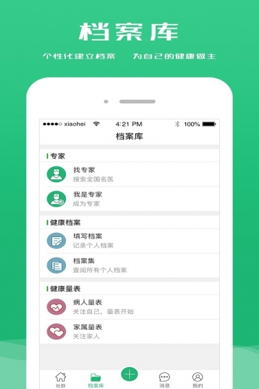 大健康社群:是国内目前领先的医疗机构移动专业社群,提供了“诊疗后康复管理系统”,对诊疗后尤其是慢性病患者的康复提供方便、专业、快捷的在线辅导,为医疗机构、医生隨时了解患者在康复过程中病情的动态变化提供了及时的数据,医患实时沟通,为患者加快康复及二次复诊提供了可靠的过程干预,从而带来医疗机构就诊压力的下降、减轻了医生的工作强度,减少患者重复就诊次数,降低患者医疗开支。解决了患者在医院诊疗后康复阶段的管理问题。协助医疗机构真正建立了贯穿医院、医生、患者及家属的健康生态圈。【更新日志】