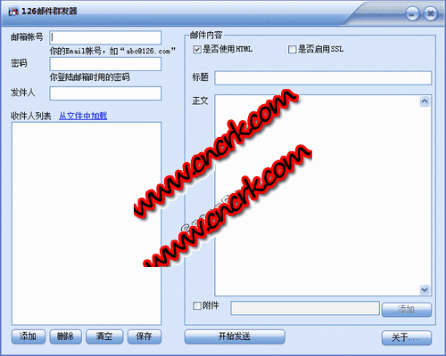 专门用于126邮箱的群发软件,很适合用来自我宣传。 使用本软件,首先你要有一个可用的126邮箱,没有的话,自己去注册一个吧。 本软件自带有使用教程录像,操作很简单。