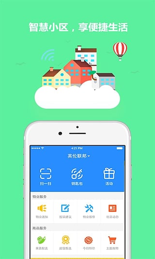 【邻里互助】打造有温度的生活圈子,汇聚共同兴趣爱好的人,让邻里关系热起来,实现有温度的生活方式。【手机开门】用手机开启楼宇门禁,从此不担心钥匙,更有海量优惠券等你拿。