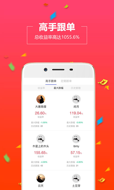——复制跟单:一键复制跟单,立享同步收益!交易外汇像玩游戏一样简单有趣!所有高手都经过多项指标考核,不小于2个月的投资交易记录,国内知名机制专业培训,严格甄选。