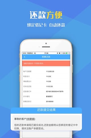 注册简便:输入手机号、验证码即可完成注册门槛极低:无需抵押,只需身份证即可